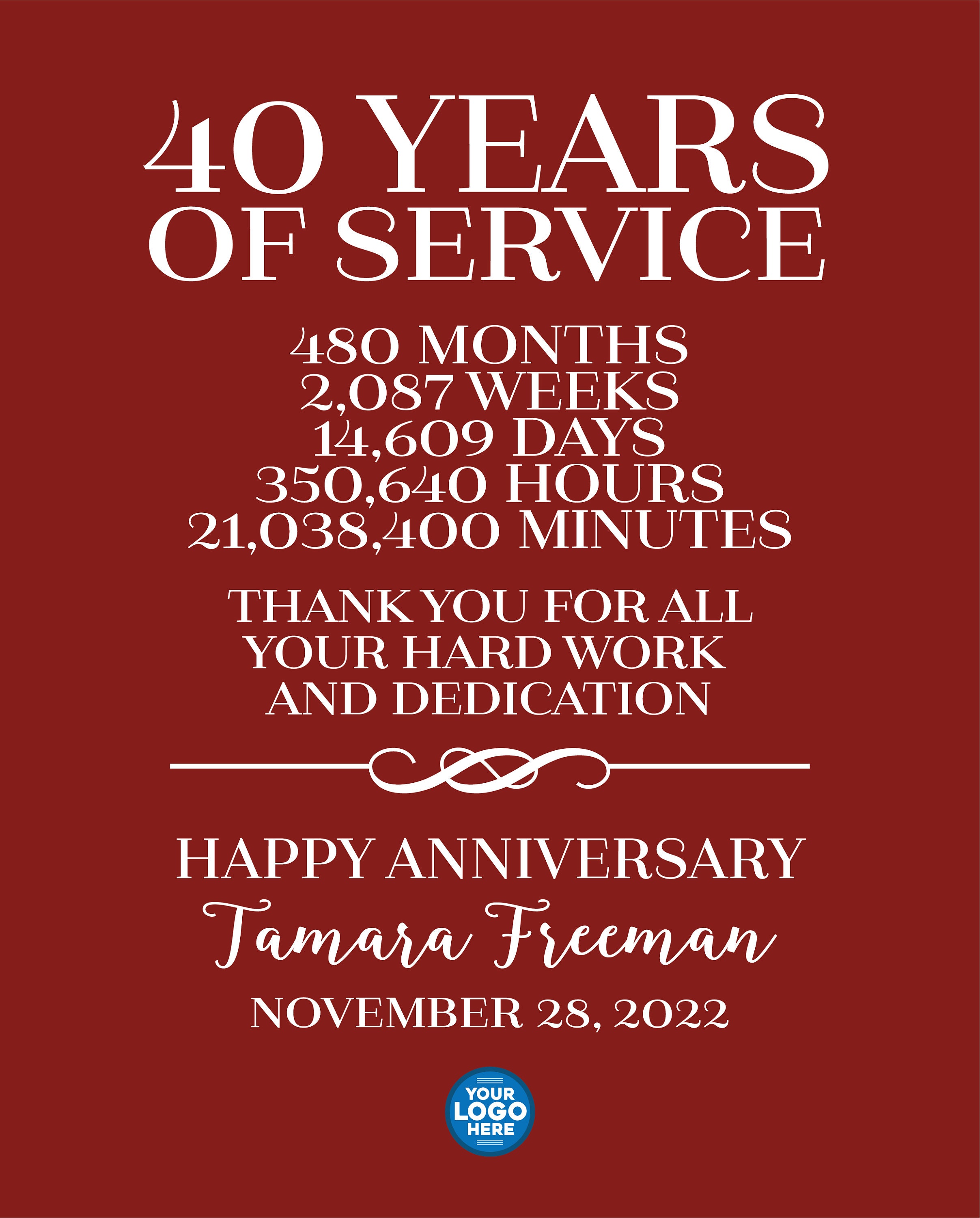 40 Year Work Anniversary Message admin, 40 Year Work Anniversary Message – “Happy anniversary to the love of my life! Spending the future with you has never been more exciting.” “Skip the dress and tux, and enjoy some cake in the comfort of each other’s company. Happy . Having a 40th anniversary your company’s anniversary. Let everyone know this celebration is for all the hard work the employees, clients, and company have done for 40 years in the community. . 40 Year Work Anniversary Message Source : www.etsy.com Ruby Red Anniversary Sign, 40th Anniversary Sign,40th Anniversary Source : www.pinterest.com Personalized 40 Year Work Anniversary PRINT, 40 Years of Service Source : www.etsy.com 40th Anniversary Gift 40 Years of Marriage Milestones One Etsy Source : www.pinterest.com Personalized Work Anniversary Gift 40 Years or Any Year of Service Source : www.etsy.com Employee Anniversary 40 Years Colorful Pattern Card | Zazzle Source : www.pinterest.com 50 Work Anniversary Wishes for Peers & Employees | Empuls Source : blog.empuls.io 7 40th ideas | 40th anniversary gifts, 40th anniversary, 40th Source : www.pinterest.com 200+ Work Anniversary Quotes and Messages to wish your Colleagues Source : www.ricotta.team 50 Work Anniversary Wishes for Peers & Employees | Empuls Source : blog.empuls.io 40 Year Work Anniversary Message 40 Year Work Anniversary Print, Gift Idea, Customizable, Thank You : Pack Air’s undergoes rebrand to better convey its position as a custom solution provider and OEM for CPGs and other manufacturers. . Use these messages to wish your colleagues and coworkers for this coming year. A year with a lot of work and effort is behind us. The business results achieved testify to the fact that the effort . 2024